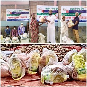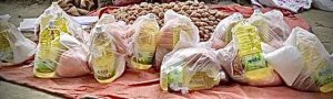 তেল ২ লিটার , মুসুর ডাল ২কেজি,আলু ১০ কেজি, চিনি ১ কেজি,সেমাই ১/২ কেজি।( প্রতি প্যাকেজে ৬৪৬/- এর মতো খরচ হয়েছে)
